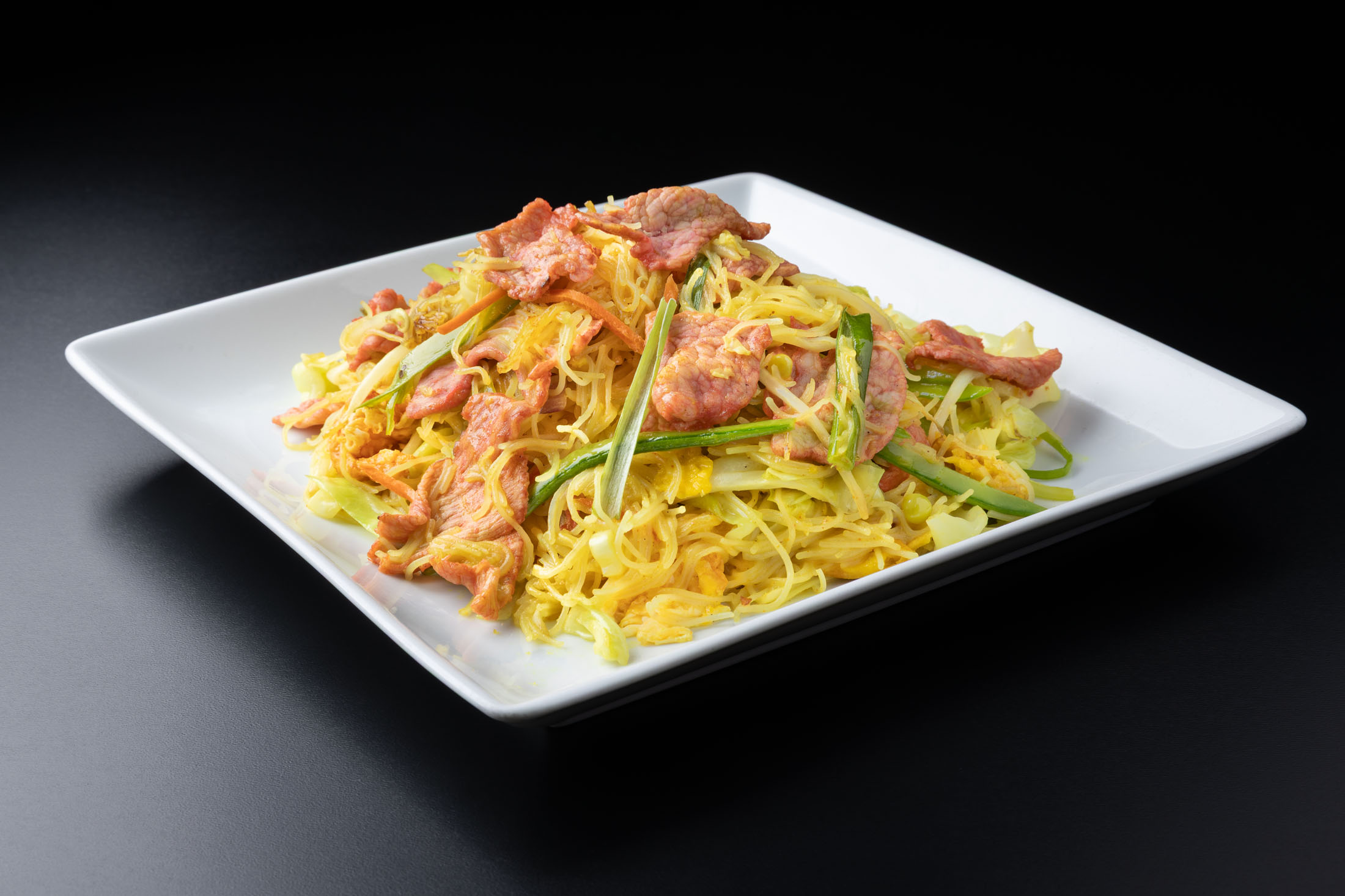 Pan-fried yellow chow mein noodles with assorted fresh vegetables in a soy and oyster sauce. Your choice of chicken, pork, beef or tofu.