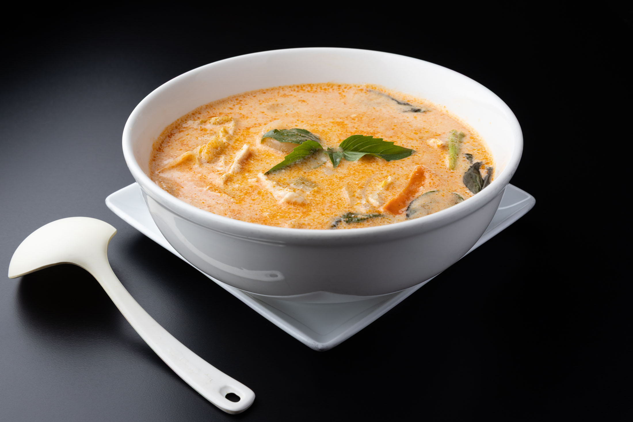 Prawns, scallops, calamari, white fish, and mussels prepared with assorted vegetables in a red curry and coconut sauce.